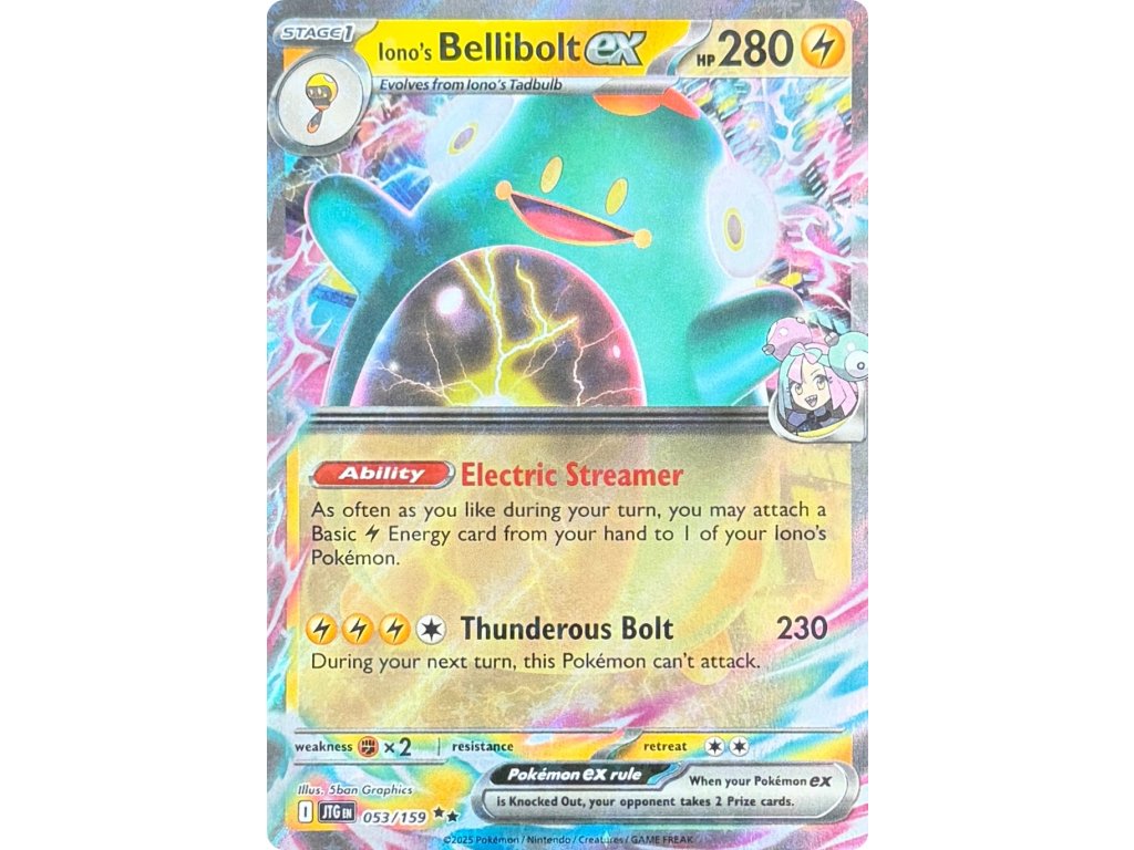 Originální Pokémon karta Iono's Killowattrel 163/159 z edice Journey Together.